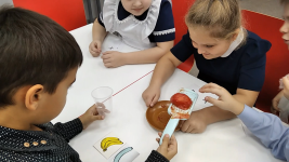 29 апреля в нашей школе прошел муниципальный семинар-практикум «Организация развивающей среды для формирования предпосылок естественнонаучной грамотности и экологического воспитания у детей дошкольного и младшего школьного возраста». Педагоги поделились опытом создания условий для формирования естественнонаучной грамотности и экологического воспитания в условиях школы, использования оборудования центра Точка роста в урочной, внеурочной и проектной деятельности. Ученица 9б класса нашей школы Махотина Анна приняла участие в IV Чемпионате «ПрофиТут» и продемонстрировала свои знания и умения в компетенции «Лабораторный химический анализ». В ходе соревнования Анна с помощью датчиков цифровой лаборатории Точки роста (рН и удельной электропроводности) успешно определила из предложенных растворов раствор сильной кислоты. Затем она провела экспертизу кислотных растворов и точно установила концентрацию предлагаемого вещества титриметрическим методом. В школе прошли мероприятия, посвящённые Дню российской науки. Учащиеся начальных классов приняли участие в познавательной беседе «Наука - это здорово», где узнали о том, как наука помогает нам каждый день, например, в создании лекарств и новых технологий. Ребята посмотрели познавательный ролик, а затем попробовали себя в необычном виде искусства - рисовании манной крупой, секреты которого рассказала заведующий библиотекой Фатыхова М.В. - как оказалось, это тоже наука, ведь нужно знать, как смешать клей и крупу, чтобы получился красивый рисунок! А учащиеся 5-6 классов активно отвечали на вопросы викторины «Да здравствует российская наука» (например, "Кто изобрел радио?") и с восторгом наблюдали за захватывающим опытом «Извержение вулкана», который для них провела учащаяся 9б класса, Буряк Арина - она смешала соду, уксус и краситель, чтобы создать эффект настоящего извержения! На базе МОУ Константиновская СШ с 15 января по 12 февраля работала стажировочная площадка "Методические аспекты формирования естественнонаучной грамотности у учеников начальной школы" для педагогов НОО. Одно из занятий проходило в Точке роста, где были представлены возможности оборудования, как инструмента развития познавательной активности и повышения мотивации к обучению младших школьников. 29 ноября в рамках межрегиональной научно-практической конференции «Современное образовательное пространство: вызовы, решения, перспективы» в ГАУ ДПО ЯО «ИРО» состоялся ежегодный Фестиваль центров образования «Точка роста». 21 ноября на базе центра "Точка роста" прошла игра "Математическое домино" для учащихся 4-5 классов. Игра позволяет сделать математику более увлекательной и доступной для детей. Такие занятия не только развивают логическое мышление и математические навыки, но и способствуют укреплению командного взаимодействия. Через дружеское соперничество дети учатся работать вместе, решать задачи и поддерживать друг друга. В осенние каникулы в школе функционировал школьный лагерь "Новое поколение". В ходе смены для ребят были проведены занятия по химии и электронике. На занятии "Знакомство с веществами" ребята узнали о свойствах пищевой соды и помогли нерадивым повару и строителю разделить смесь соли и речного песка. Во время занятия по электронике ребята собирали электрические цепи электронного